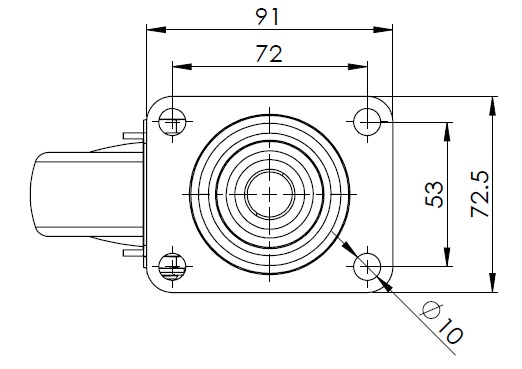 表面鍍鋅,底板式安裝裝置 耐衝擊聚丙烯輪芯,熱塑性彈性體(TPR)輪面 深灰色,輪子—中管式。 |