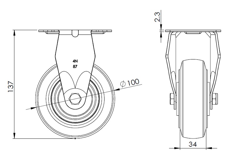 | 固定式腳輪,一體成型沖壓腳架—儀器孔 表面鍍鋅,底板式安裝裝置 耐衝擊聚丙烯輪芯,熱塑性彈性體(TPR)輪面 深灰色,輪子軸承—精密滾珠。 |
