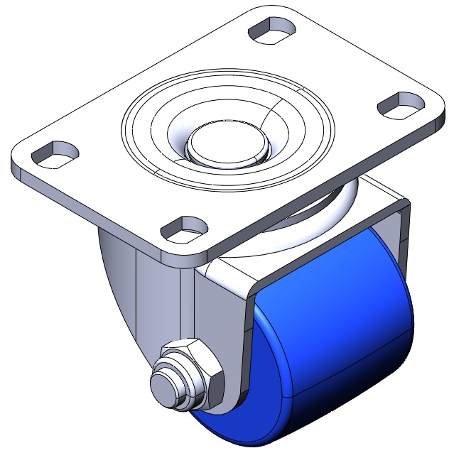 | 活动式脚轮,底板铆合冲压脚架—高级孔 表面镀锌,底板式安装装置 铸铁制轮芯,高品质聚氨酯轮面 蓝色,轮子轴承—精密滚珠。 |