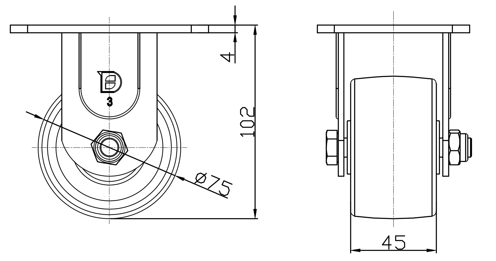 公制 英制 轮径 75mm 轮宽 45mm |