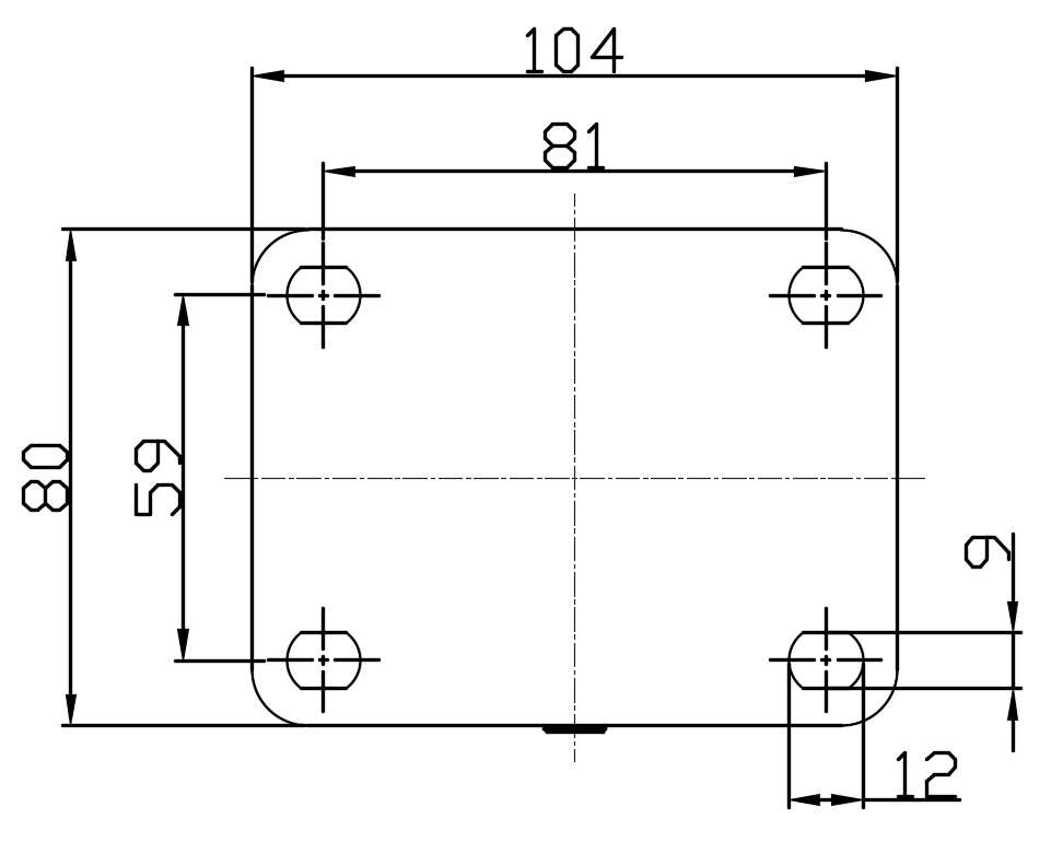 底板规格 104 x 80mm 底板孔距 81 x 59mm 高級孔 底板孔径 12 x 9mm 总高 102mm 硬度 92±5° Shore A 荷重(动态) 450kgs |