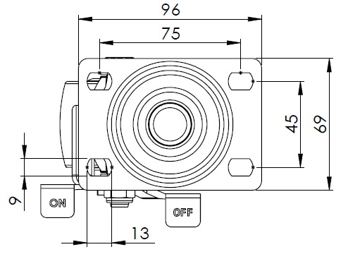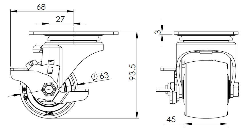 Zine-Plated surface, Mounting Type - Top Plate device Reinforced Polypropylene and Wheel Tread Bearings—Ball Bearings. |
