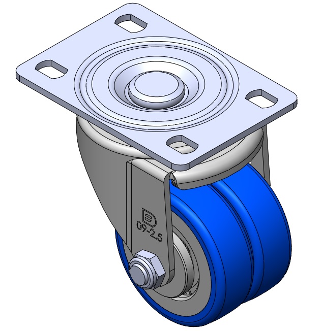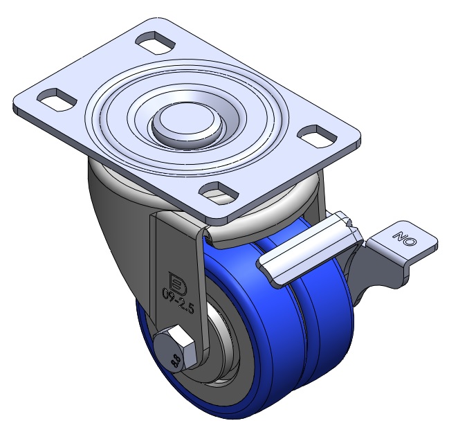 | Equipped with Side Brakes and a With locking system for the Casters. Riveted and Stamping Top Plate legs with high-grade perforations. Zine-Plated surface, Mounting Type - Top Plate. Cast Iron Wheel Center, High Quality Polyurethane Wheel Tread. Blue Bearing—Ball Bearings. |