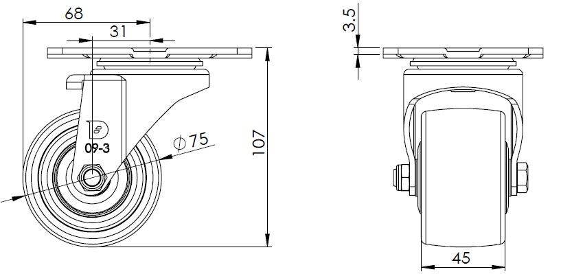 1109 Medium Duty/Low Profile Business Machine Caster Series |