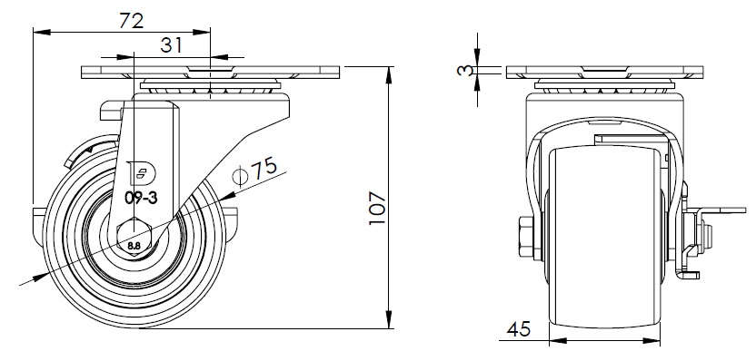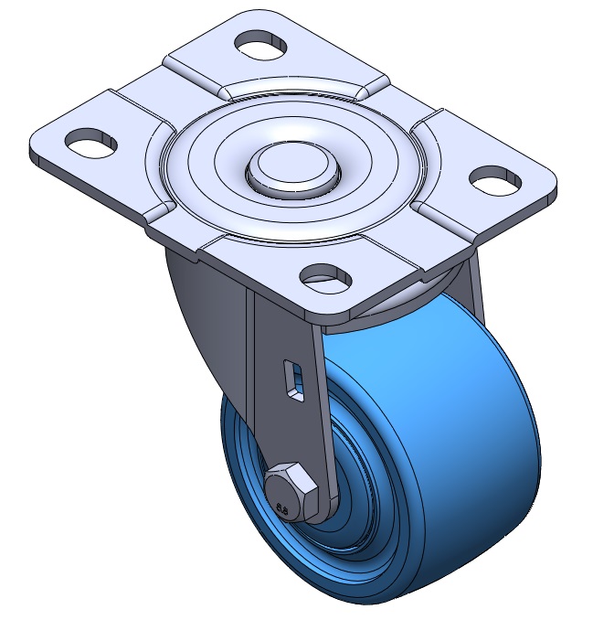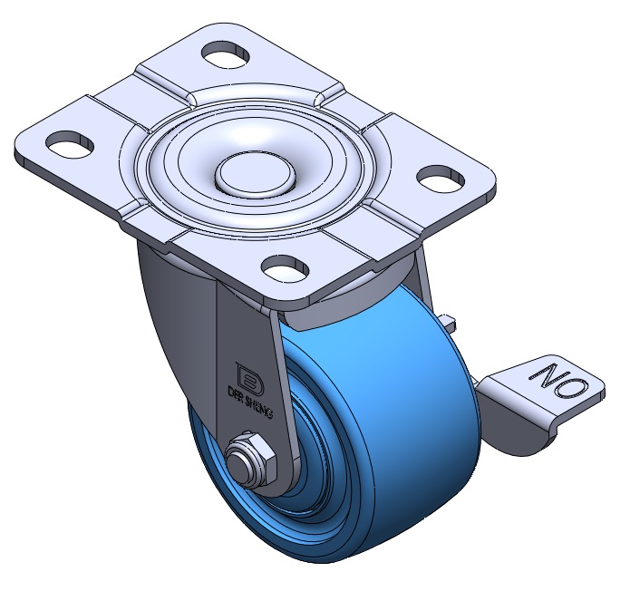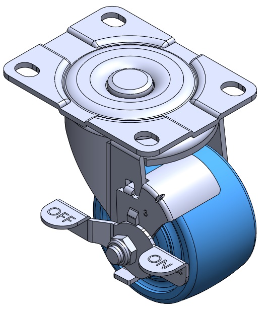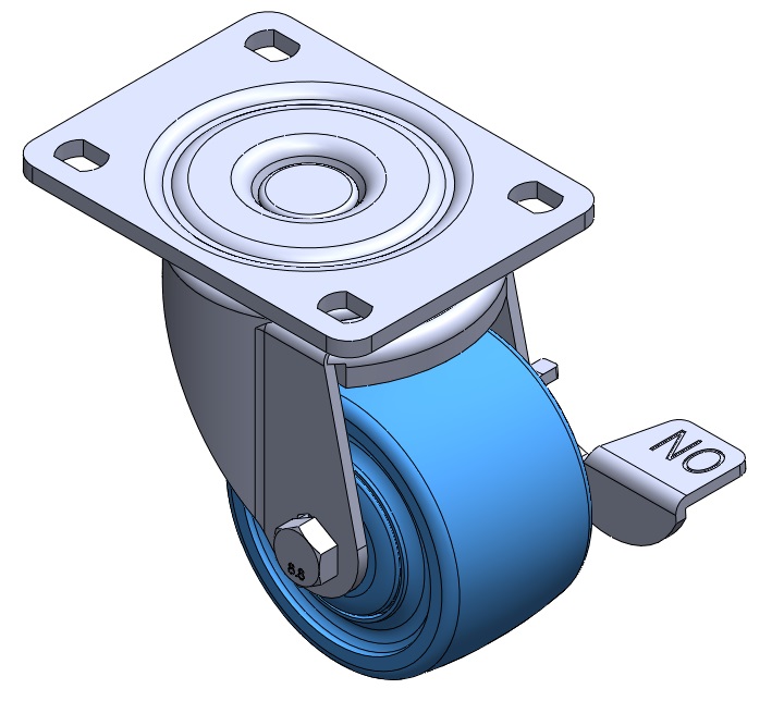 Castors with Side Brakes and Locking system. Top Plate Riveted Stamping Fork Surface Zine-Plated, Mounting Type - Top Plate Reinforced Polypropylene and Wheel Tread Bearing - Ball Bearing. |