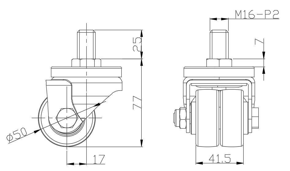 Wheel Tread: high quality polyurethane Wheel Center: cast iron core Drawings are for reference only and may differ from the product |