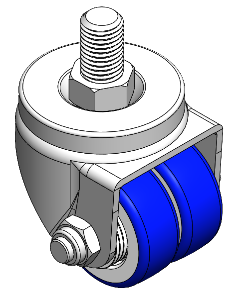 Swivel Caster, thread-Riveted Stamping Fork—M16-P2 Zine-Plated, Mounting Type - Threaded Stem Cast Iron Wheel Center, High Quality Polyurethane tread Blue color, Bearing—Ball Bearing. |