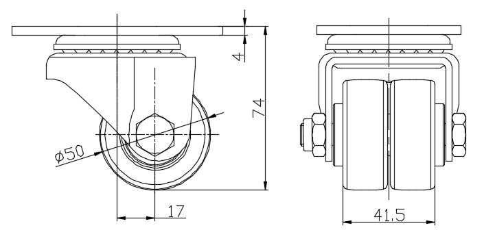 Wheel Tread: high quality polyurethane Wheel Center: cast iron core Drawings are for reference only and may differ from the product |