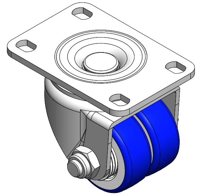Swivel Caster with Riveted Fork and Stamping Fork – 75 x 45 mm (3" x 1-3/4") Bolt Hole Spacing Zine-Plated, Mounting Type - Top Plate Cast Iron Wheel Center, High Quality Polyurethane tread Blue color, Bearing – Ball Bearing |