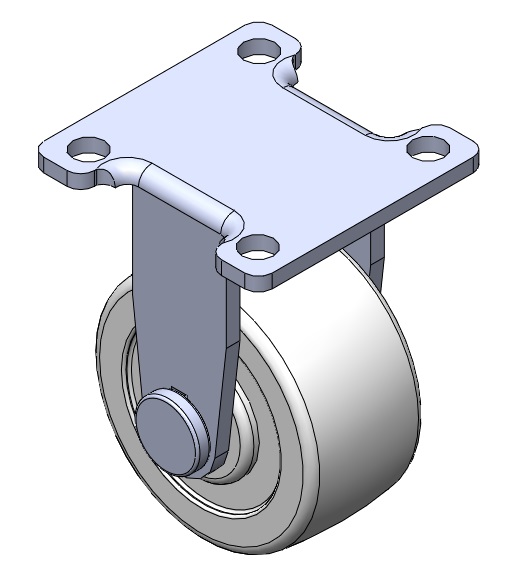 | 固定式腳輪,一體成型沖壓腳架 表面鍍鋅,底板式安裝裝置 熱可塑性塑膠輪芯、輪面 輪子—中管式。 |