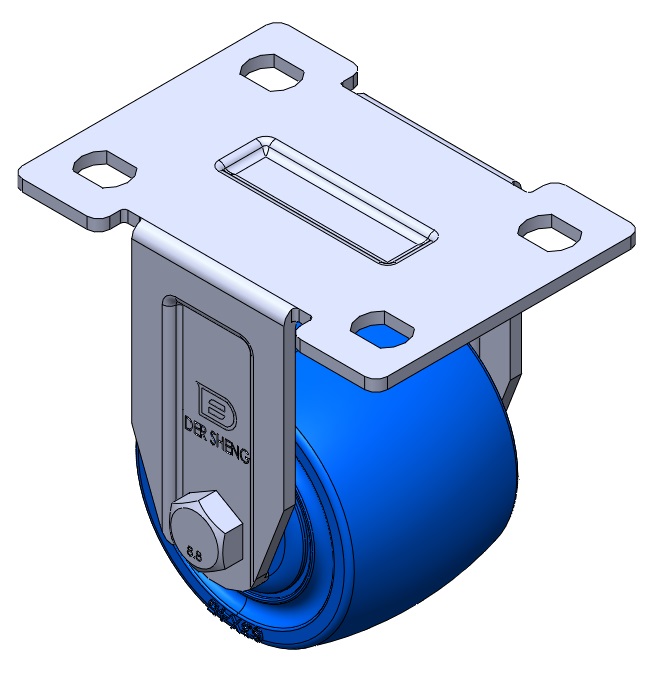 | 固定式腳輪,一體成型沖壓腳架 表面鍍鋅,底板式安裝裝置 熱可塑性塑膠輪芯、輪面 輪子軸承—精密滾珠。 |