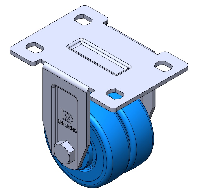 | 固定式腳輪,一體成型沖壓腳架 表面鍍鋅,底板式安裝裝置 鑄鐵製輪芯,高品質聚氨酯輪面 藍色,輪子軸承—精密滾珠。 |