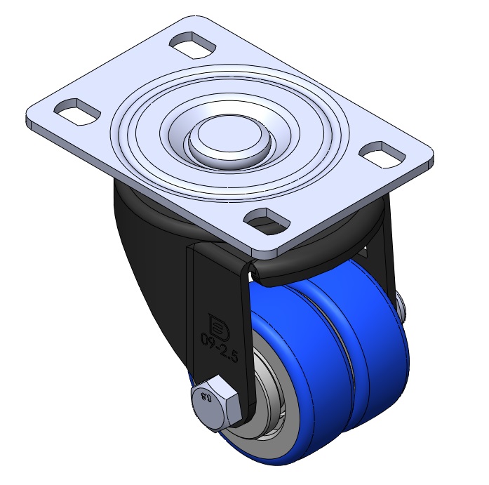 | 活動式腳輪,底板鉚合沖壓腳架—高級孔 底板鍍鋅,腳架電著,底板式安裝裝置 鑄鐵製輪芯,高品質聚氨酯輪面 藍色,輪子軸承—精密滾珠。 |