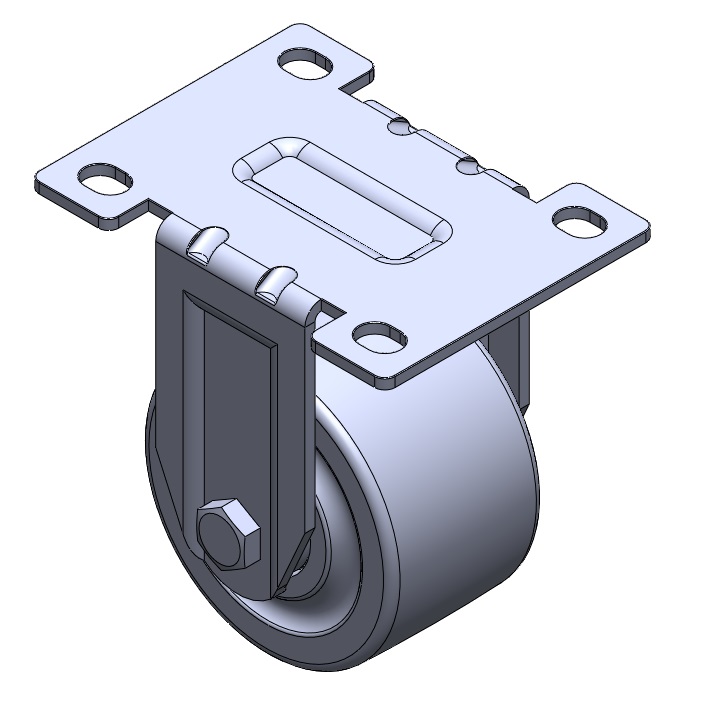 | 固定式腳輪,一體成型沖壓腳架 表面鍍鋅,底板式安裝裝置 浸軟織物的壓縮合成樹脂輪芯、輪面 輪子軸承—精密長珠。 |
