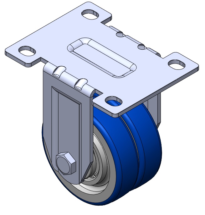 | 固定式腳輪,一體成型沖壓腳架 表面鍍鋅,底板式安裝裝置 鑄鐵製輪芯,高品質聚氨酯輪面 藍色,輪子軸承—精密滾珠。 |