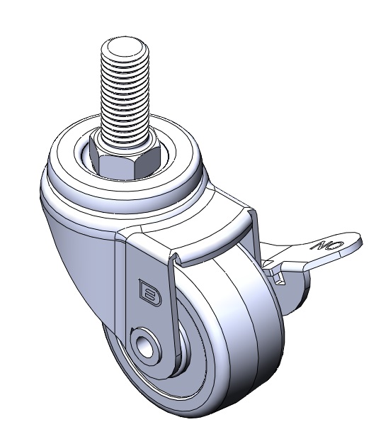 | 配有側(輪)煞式,鎖定系統的腳輪。牙心鉚合沖壓腳架—M12-P1.75