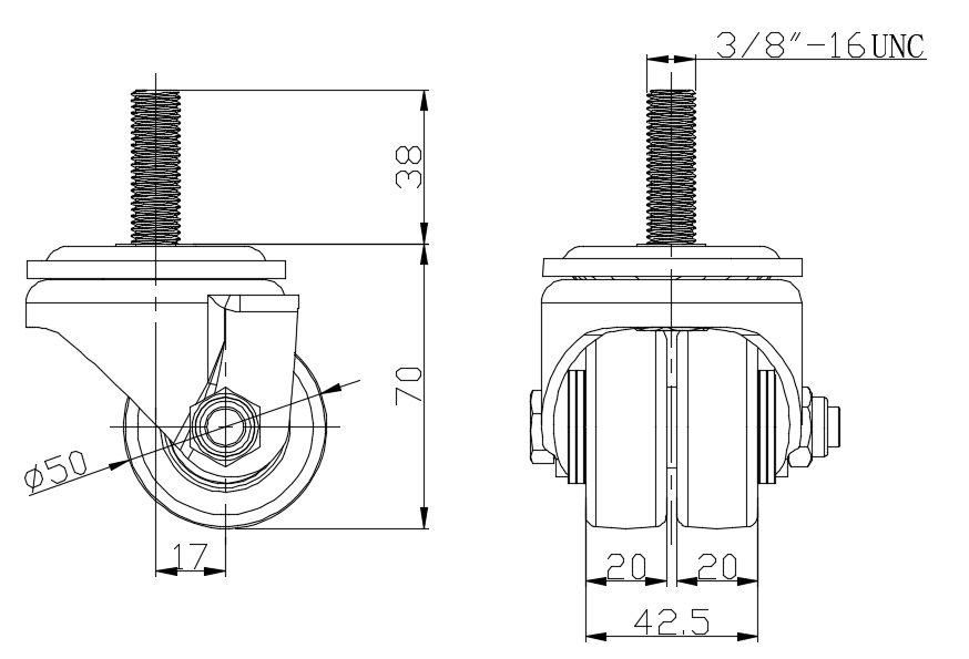 | 活動式腳輪,牙心铆合沖壓脚架—3/8"-16UNC