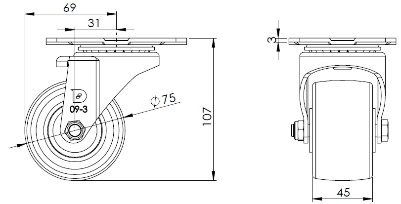 1109 Series — BÁNH XE LÙN (Trọng tâm thấp) |