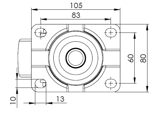 Bề mặt mạ kẽm, thiết bị lắp đế bánh xe Lõi bánh xe bằng nhựa tổng hợp nén và bề mặt bánh xe với vải tẩm Bánh xe - loại ống tâm. |