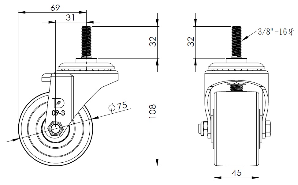 1109 Series — BÁNH XE LÙN (Trọng tâm thấp) |