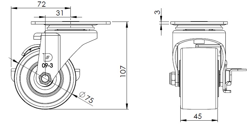 1109 Series — BÁNH XE LÙN (Trọng tâm thấp) |