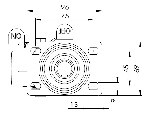 Quy cách tấm lắp 96 x 69mm khoảng cách các lỗ trên tấm nền 75 x 45mm Khoảng cách các lỗ lắp 13 x 9mm Độ lệch tâm 31mm Sự can thiệp quay 144mm Tổng chiều cao 107mm Bán kính xoay 72mm Độ cứng 75±5° Shore D Tải trọng (động) 300kgs |