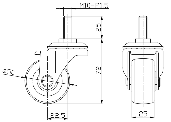Bánh xe xoay, đế dập đinh tán ren—M10-P1.5