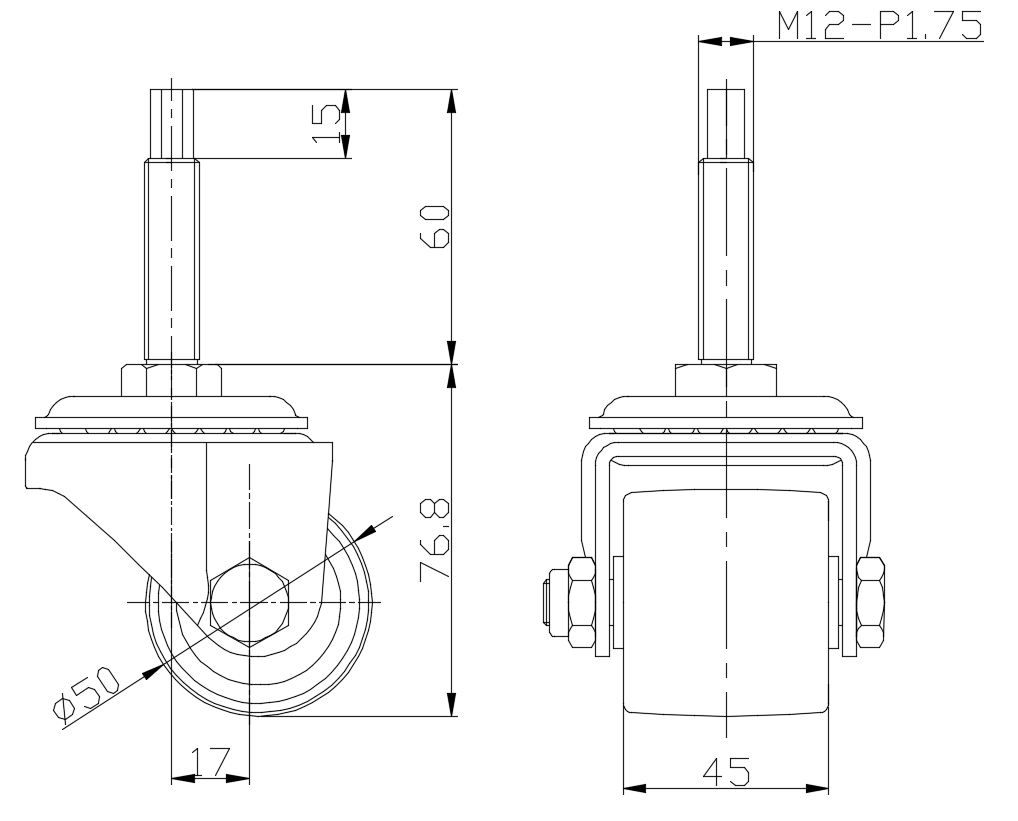 Bánh xe xoay, đế dập đinh tán ren—M12-P1.75