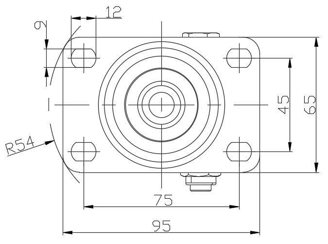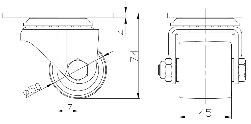 Hoàn thiện mạ kẽm, lắp đặt trên đế Lõi bánh xe và mặt bánh xe bằng nhựa nhiệt dẻo Vòng bi bánh xe màu đen – vòng bi chính xác |