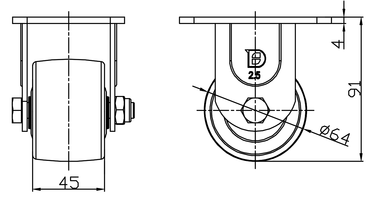 Bánh xe cố định, đế chân hàn—lỗ chất lượng cao