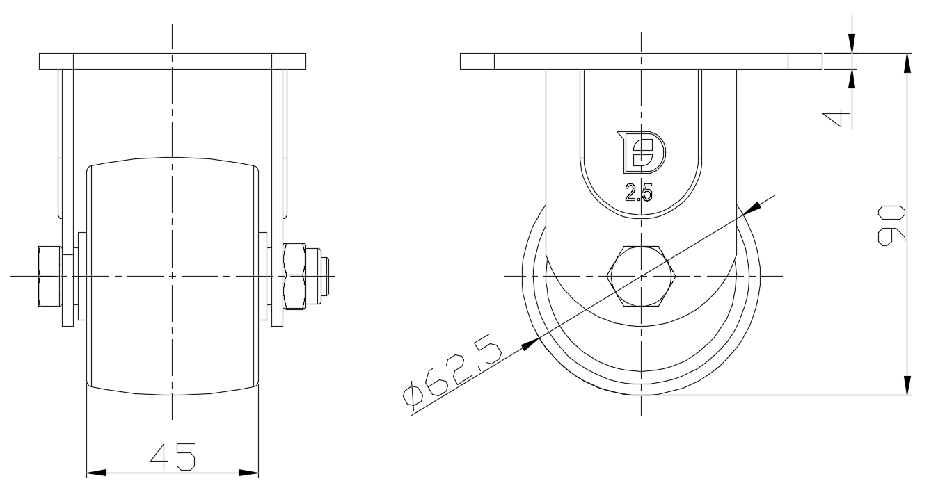 Hoàn thiện mạ kẽm, lắp trên đế Lõi thép, mặt đế bằng polyurethane chất lượng cao Vòng bi bánh xe màu nâu—vòng bi chính xác. |