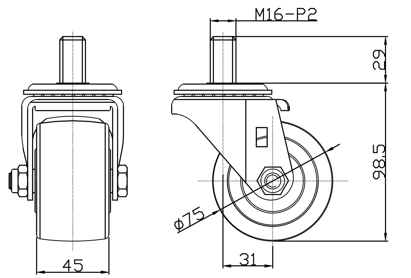 Bánh xe xoay, đế dập đinh tán ren—M16-P2