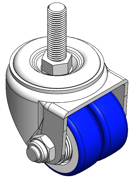 Hoàn thiện mạ kẽm, lắp ren Lõi gang, mặt bánh xe bằng polyurethane chất lượng cao Màu xanh lam, vòng bi chính xác. |