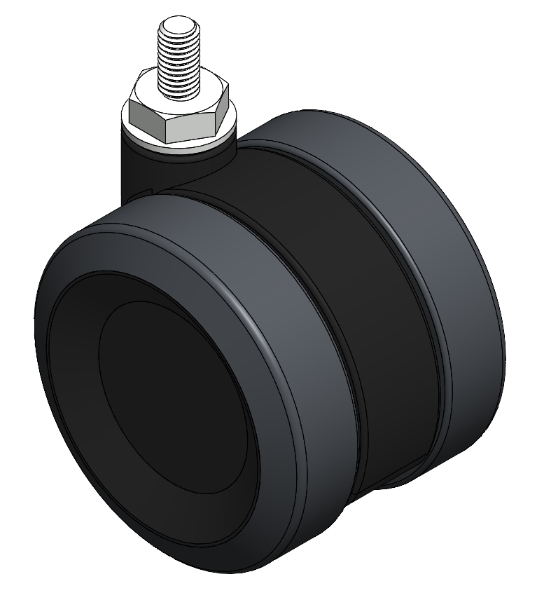 聚丙烯增强料轮架,丝扣式安装装置 聚丙烯(PP)轮芯,聚氯乙烯(PVC)轮面 黑深灰色,轮子—中管式。 |