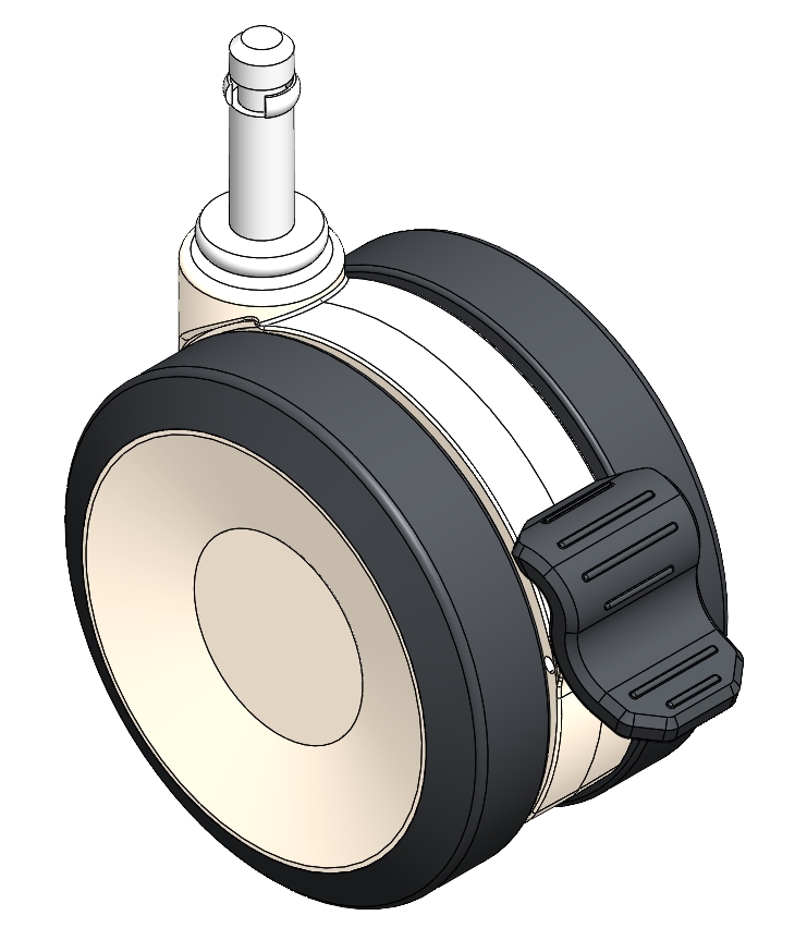 聚丙烯增强料轮架,插心式安装装置 聚丙烯(PP)轮芯,聚氯乙烯(PVC)轮面 白深灰色,轮子轴承—精密滚珠。 |