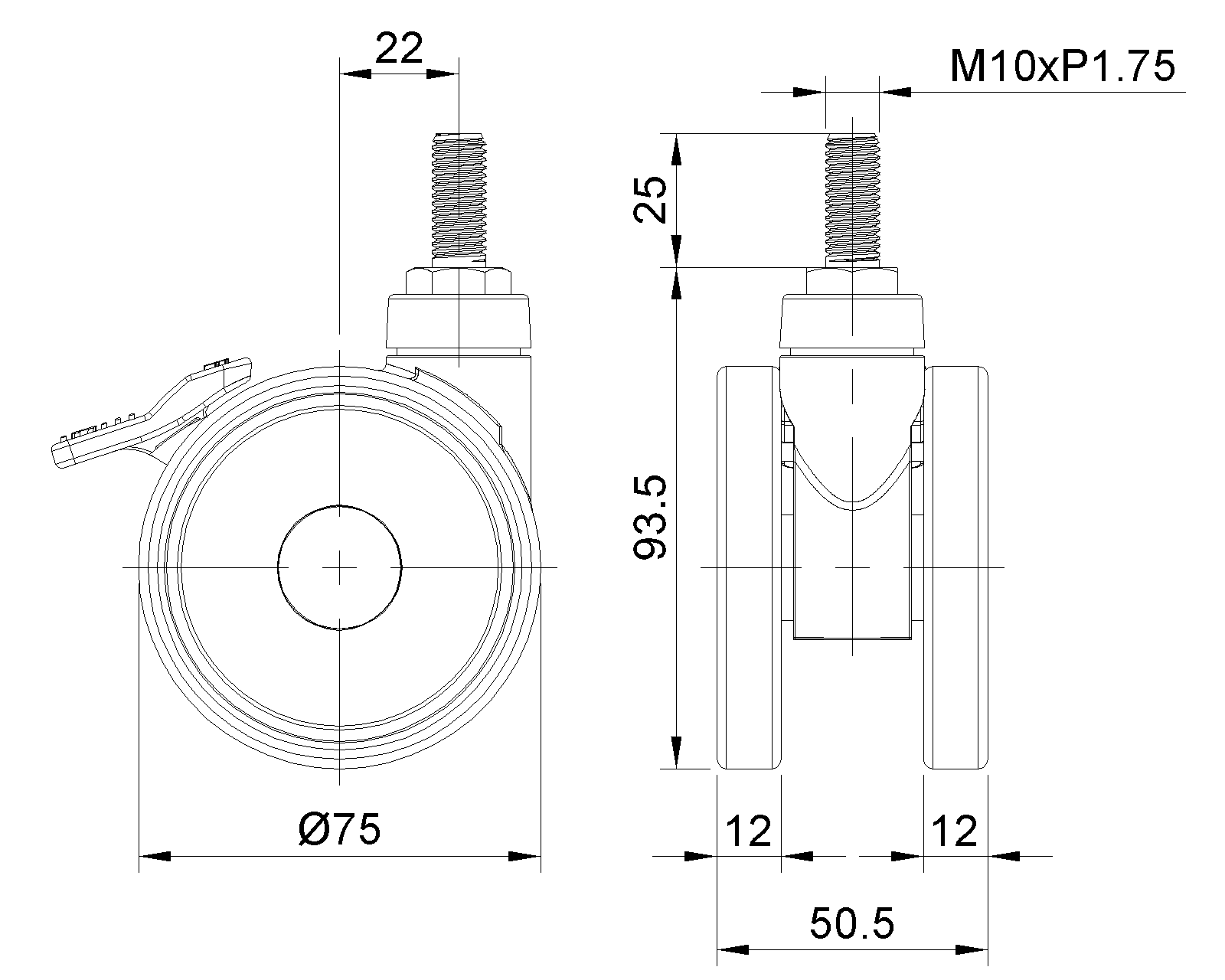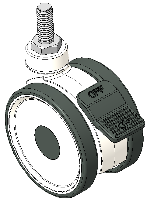 Total Brake Caster, M10x25 thread, white Fork with reinforced Polypropylene Rustproof, Corrosion resistant, Attractive appearance, Economical, and flexible High-Quality Impact-Resistant Polypropylene Wheel Center, High-Quality Reinforced Polypropylene Rubber (TPR) Wheel Tread Dark gray, Plain Bearing |