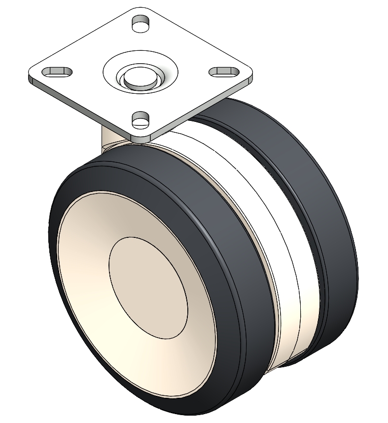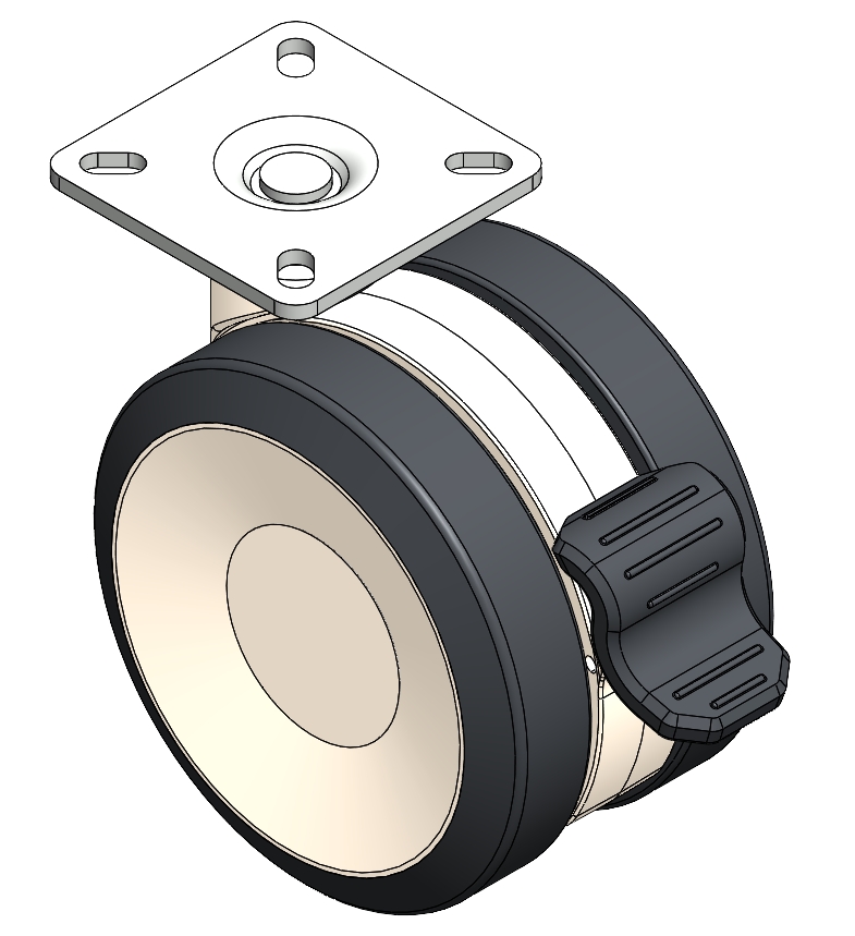 Swivel Caster with injection-molded Fork Riveted to Forkplate. reinforced Polypropylene Fork, Top Platetype (3T) Mounting Type system Polypropylene (PP) Wheel Center, polyvinyl chloride (PVC) tread White-dark gray, Bearing—Ball Bearing. |