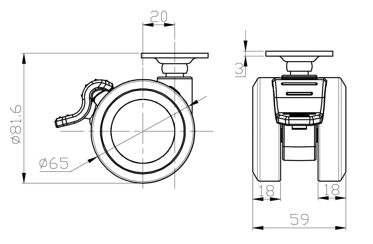 Wheel Tread: PVC polyvinyl chloride Wheel Center: PP polypropylene Drawings are for reference only and may differ from the product |