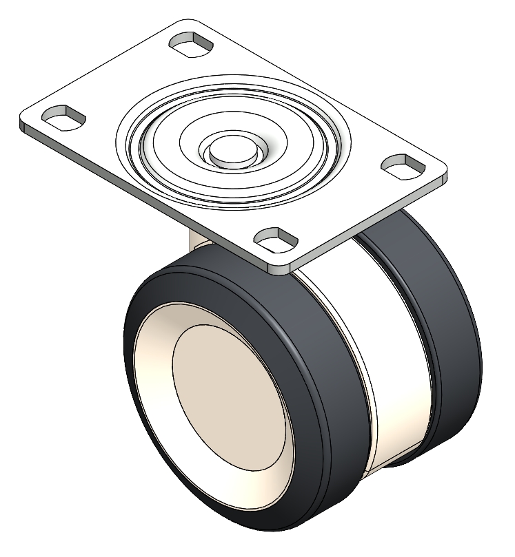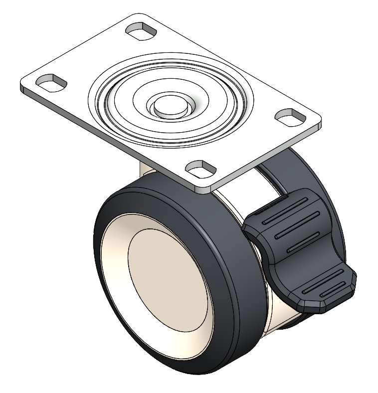 Swivel Caster with injection-molded Fork Riveted to Top Plate. reinforced Polypropylene Fork, Top Plate (3T) Mounting Type system Polypropylene (PP) core, polyvinyl chloride (PVC) tread White-dark gray, wheel - Plain Bearing. |
