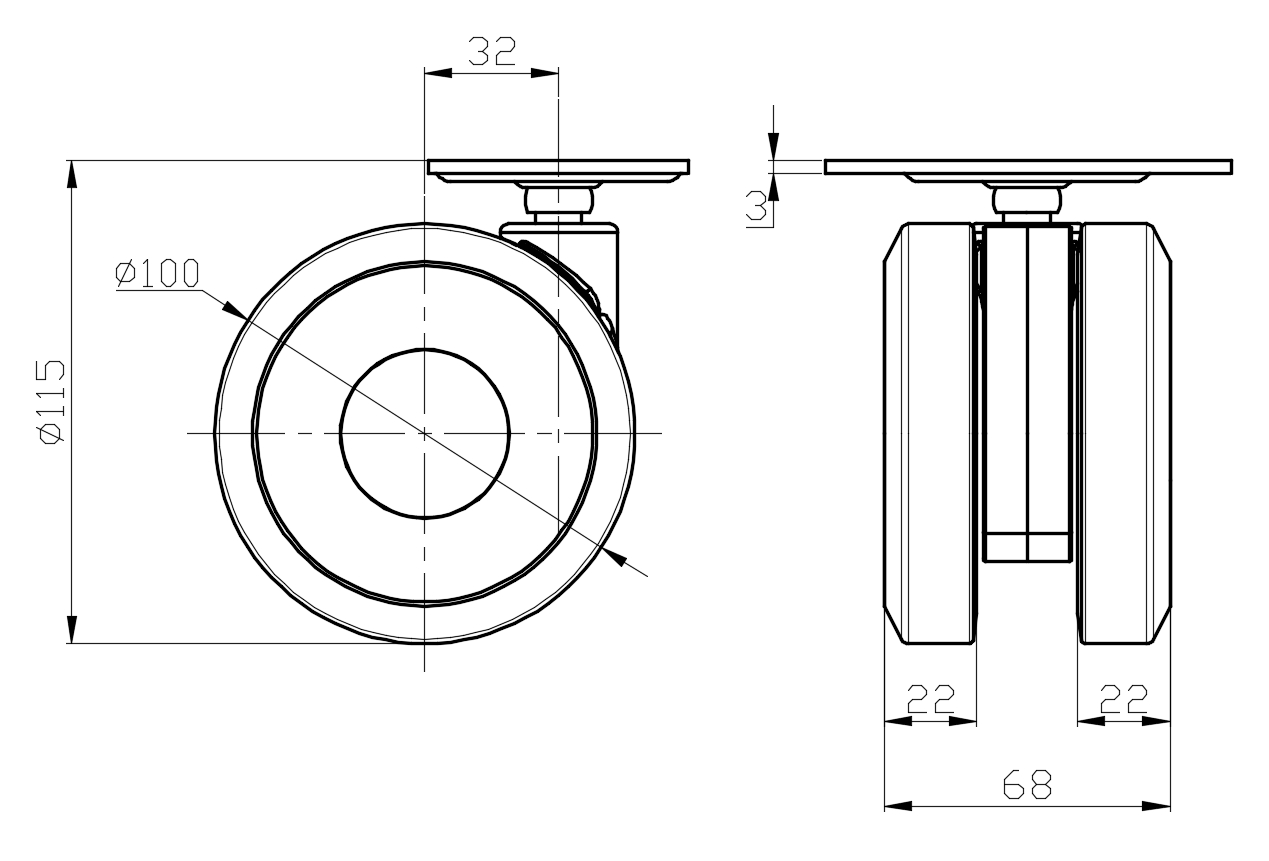 Wheel Tread: PVC polyvinyl chloride Wheel Center: PP polypropylene Drawings are for reference only and may differ from the product |