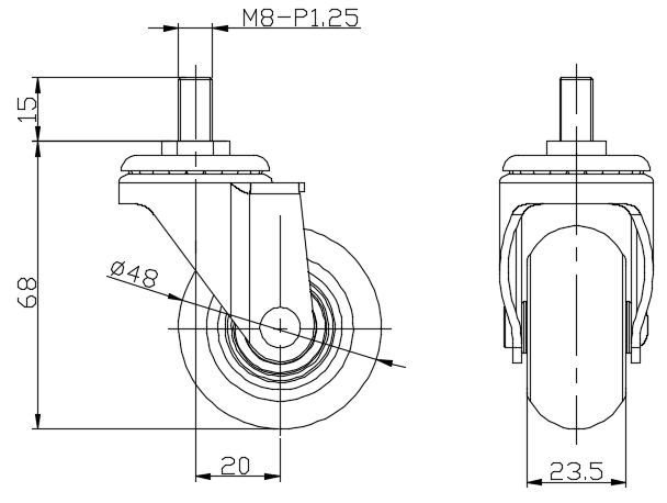 Swivel Caster, thread-Riveted Stamping Fork—M8-P1.25
