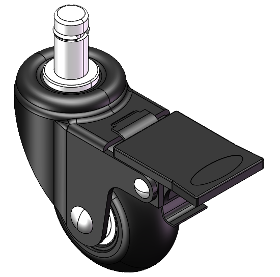 Electroplated surface, Mounting Type - Cylindrical Stem with brass buckle. Polypropylene core, High Quality Polyurethane Wheel Tread. Translucent black finish. Bearings—Ball Bearings. |