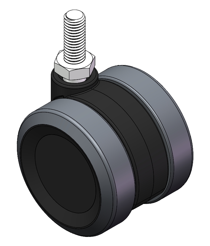 reinforced Polypropylene Fork, Mounting Type - Threaded Stem. Polypropylene (PP) core, polyvinyl chloride (PVC) Wheel Tread. Dark gray, Plain Bearing. |