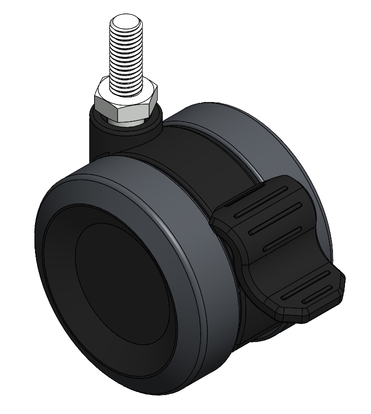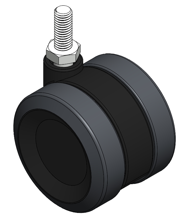 reinforced Polypropylene Fork, Mounting Type - Threaded Stem Polypropylene (PP) core, polyvinyl chloride (PVC) Wheel Tread Dark gray, wheel - Plain Bearing. |