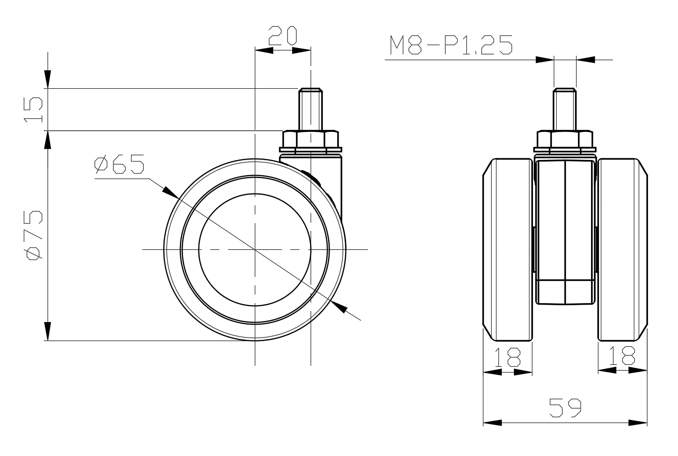 Wheel Tread: PVC polyvinyl chloride Wheel Center: PP polypropylene Drawings are for reference only and may differ from the product |