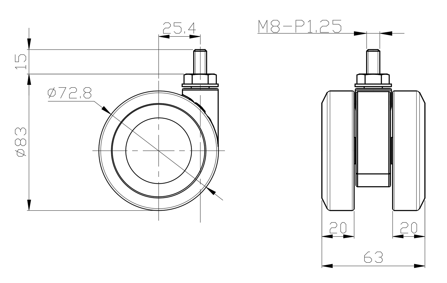 Wheel Tread: PVC polyvinyl chloride Wheel Center: PP polypropylene Drawings are for reference only and may differ from the product |