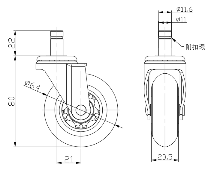 PU (black transparent) Wheel Diameter × Wheel Width 64 × 23.5mm |