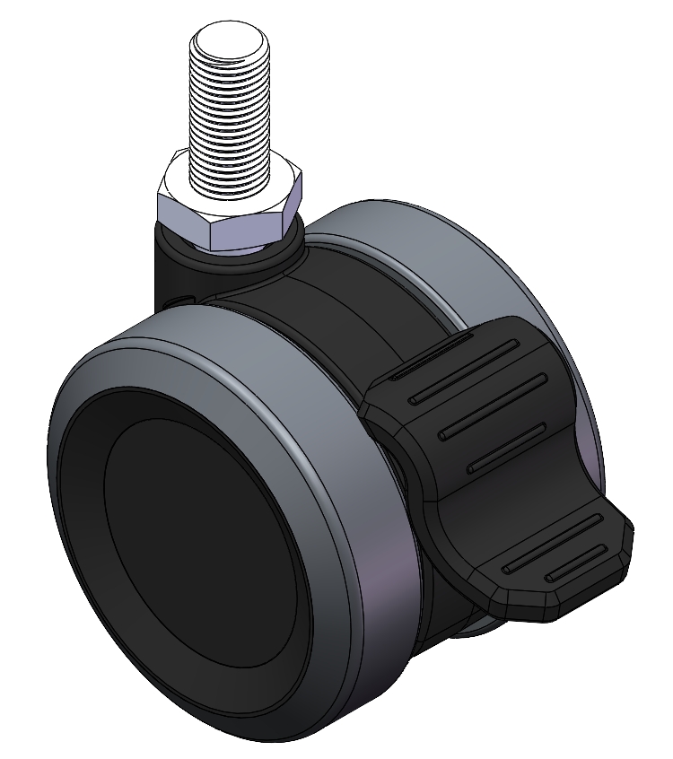 Single Brake locking system, thread-Riveted injection-molded Fork - M12-P1.75 reinforced Polypropylene Fork, Mounting Type - Threaded Stem Polypropylene (PP) Wheel Center, polyvinyl chloride (PVC) tread Dark gray, wheel - Plain Bearing. |