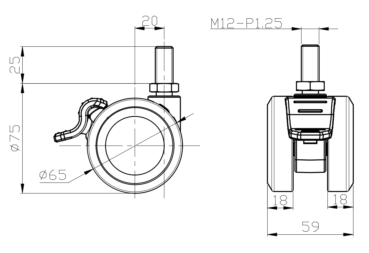 Wheel Tread: PVC polyvinyl chloride Wheel Center: PP polypropylene Drawings are for reference only and may differ from the product |
