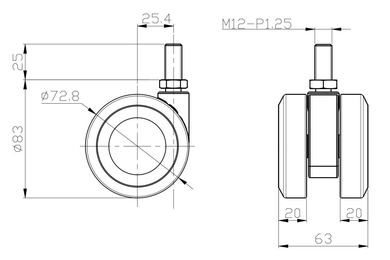 Wheel Tread: PVC polyvinyl chloride Wheel Center: PP polypropylene Drawings are for reference only and may differ from the product |